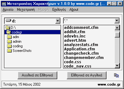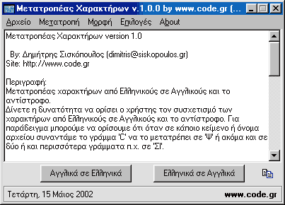 | Περί του προγράμματος "Μετατροπέας χαρακτήρων" |